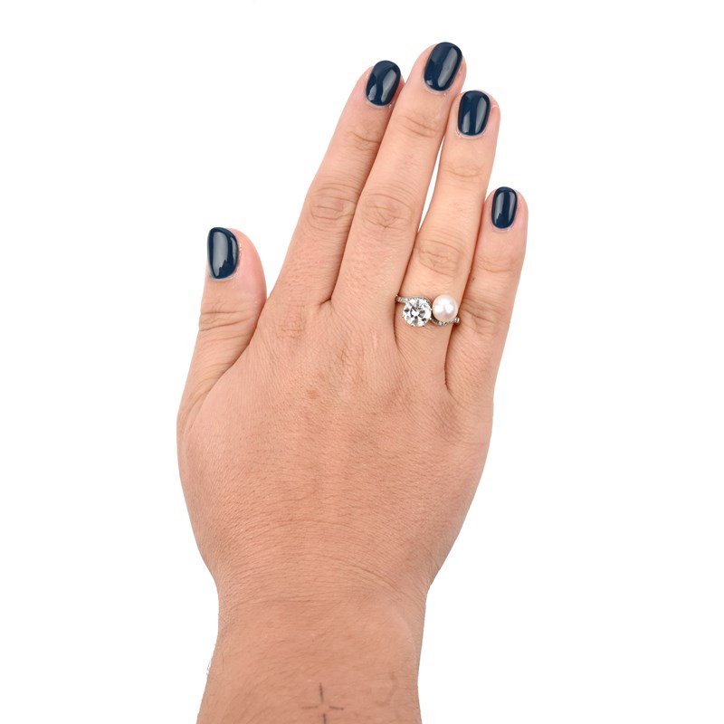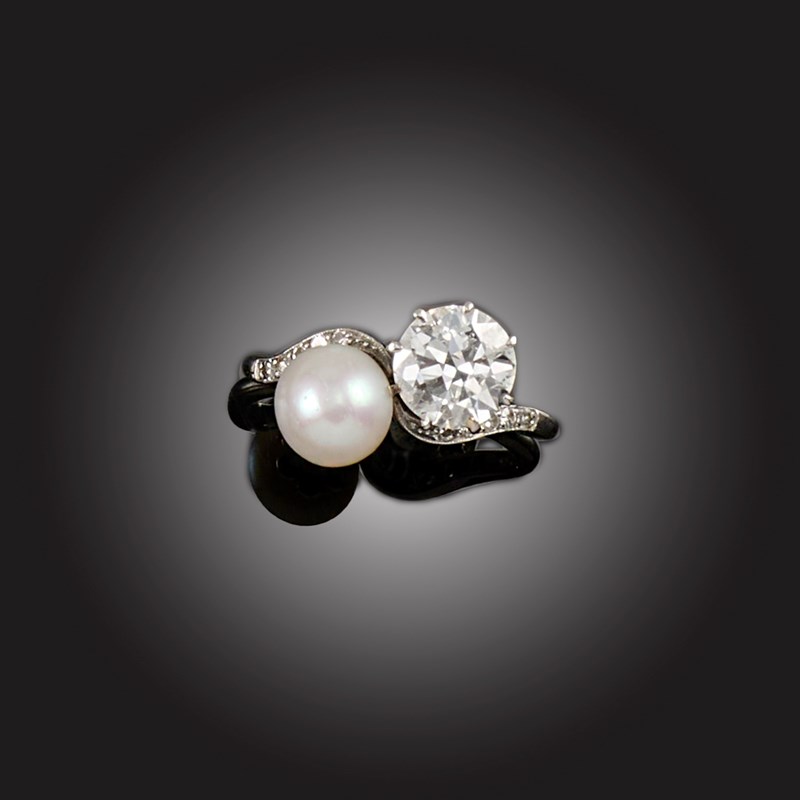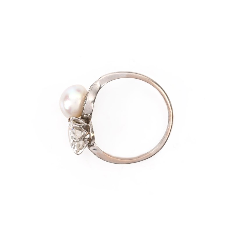 A DIAMOND AND NATURAL PEARL RING