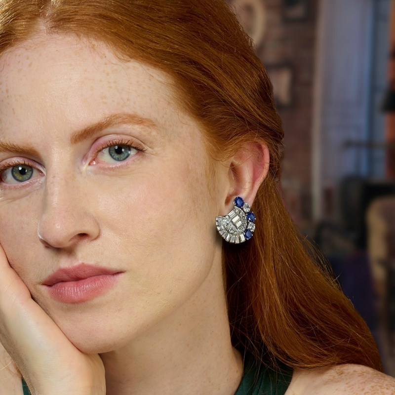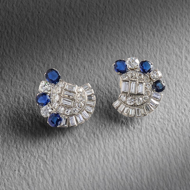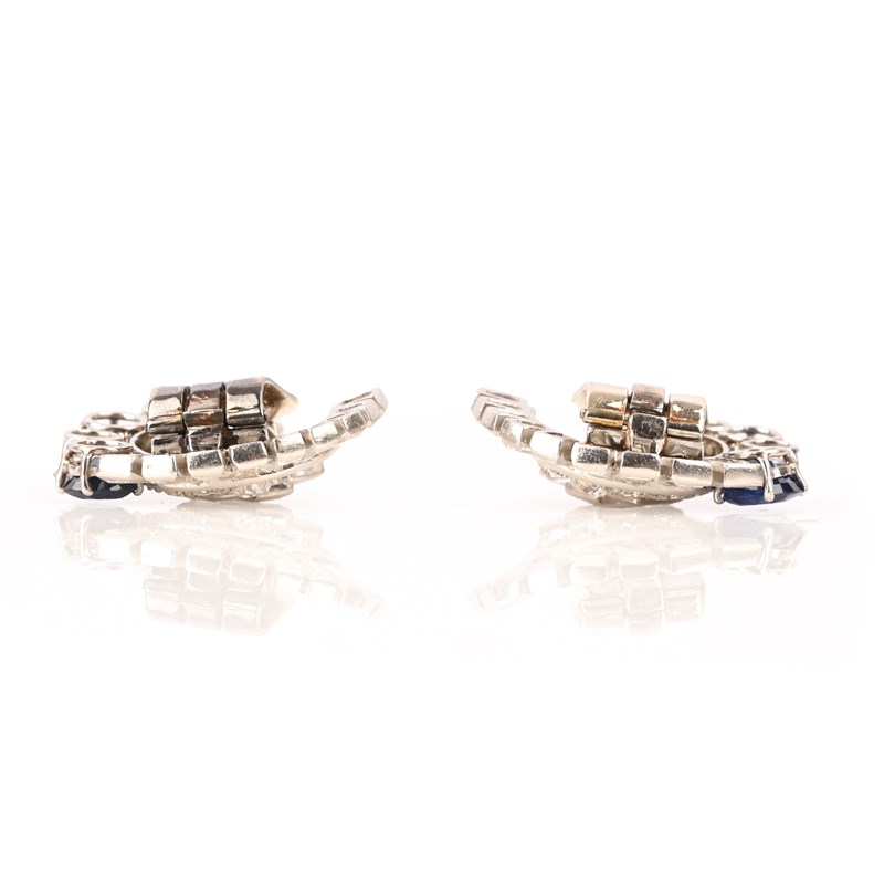 A PAIR OF SAPPHIRE AND DIAMOND EARCLIPS, CIRCA 1940
