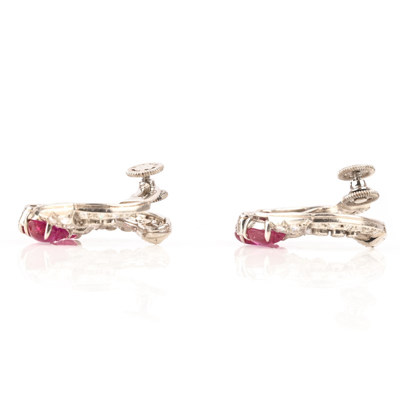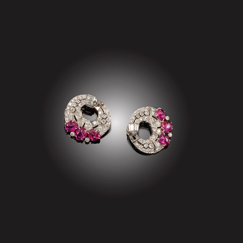 GEORGES LEDERMAN, A PAIR OF ART DECO RUBY AND DIAMOND EARCLIPS, 1920s