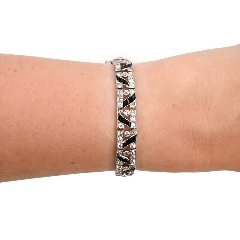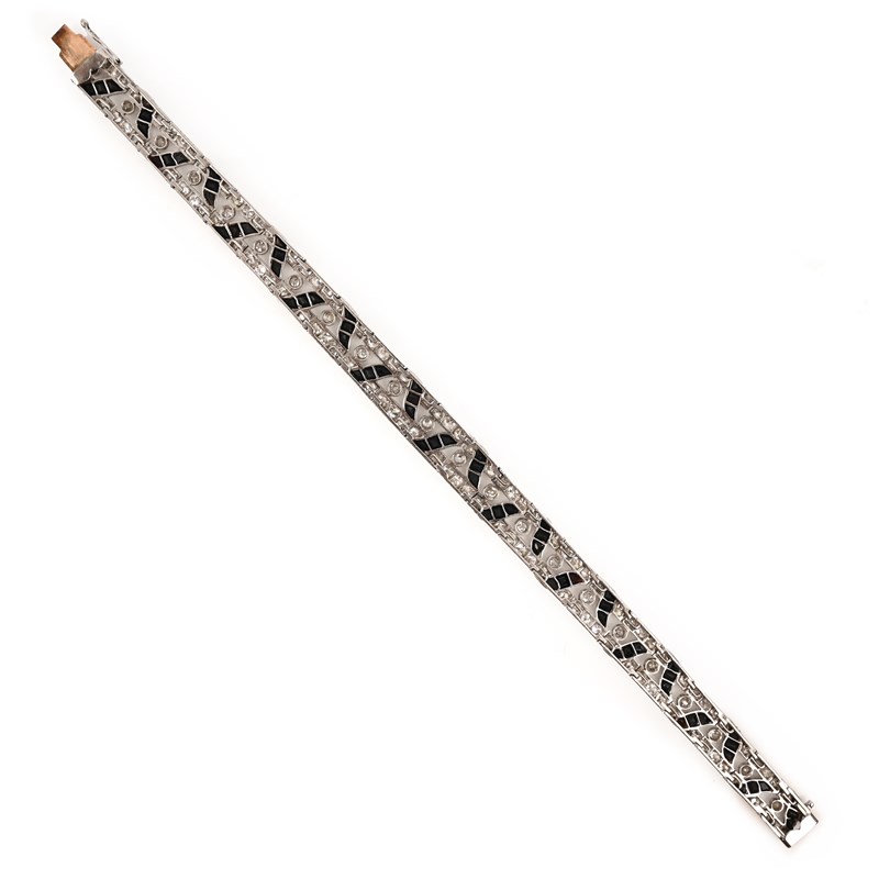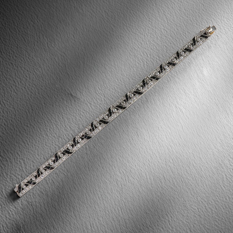 SERVAN, A FRENCH ART DECO ONYX AND DIAMOND STRAP BRACELET, CIRCA 1925