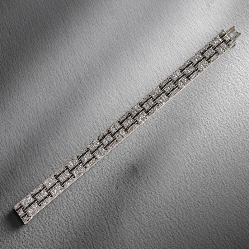 The geometric elegance and precision setting of the present diamond bracelet are characteristic of Louis Maruzzi (active 1911–1944), an Italian-born jeweller established at 10 rue de la Vrillière, Paris. Maruzzi’s workshop operated at the heart of the city’s high jewellery district and became a trusted manufacturing partner to leading maisons, most notably Van Cleef & Arpels. In the 1920s and 1930s, as the maison expanded its repertoire of platinum and diamond creations, it relied on a network of master ateliers to execute designs with absolute fidelity to its aesthetic ideals.
