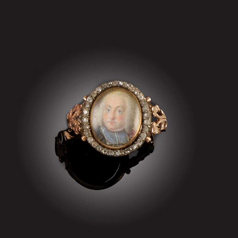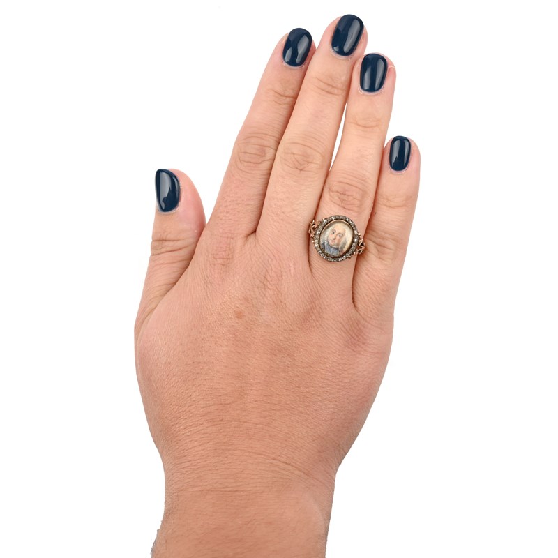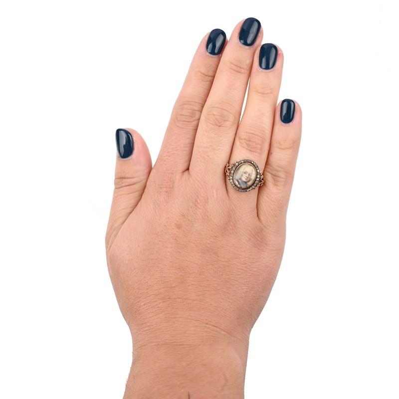 λ A 19TH CENTURY REVOLVING PORTRAIT MINIATURE RING