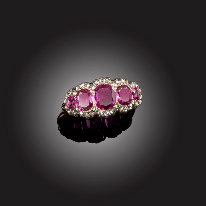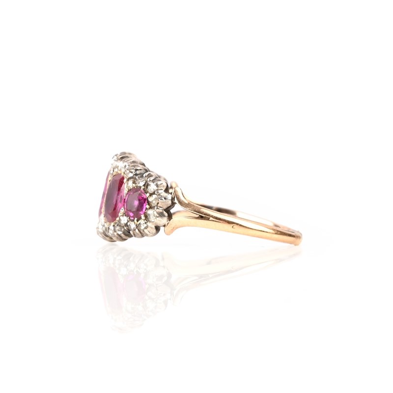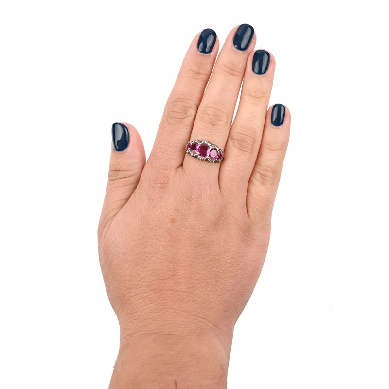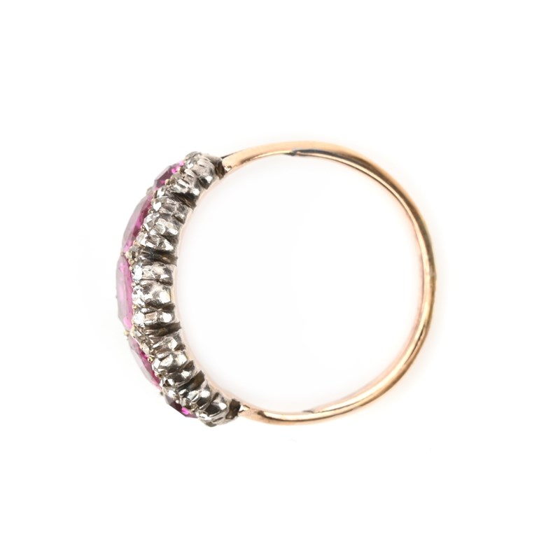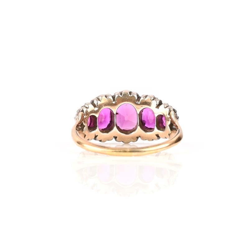A 19TH CENTURY RUBY AND DIAMOND FIVE-STONE RING