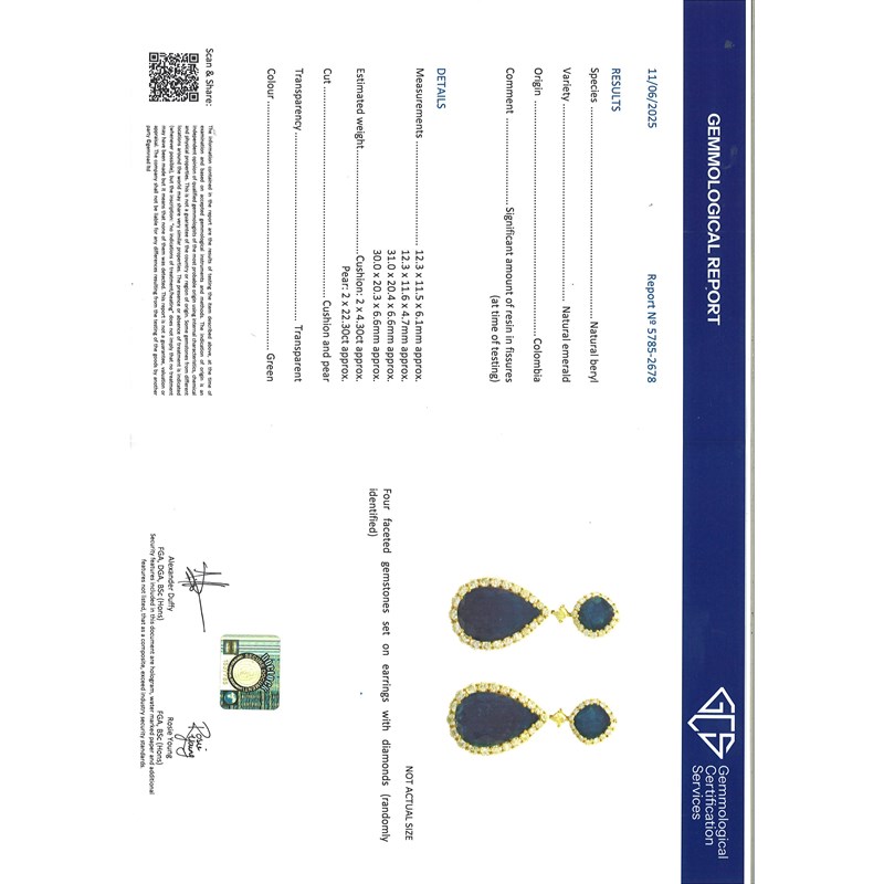 Accompanied by GCS report number 5785-2678 dated 11th June 2025 stating that the four emeralds, measuring approx. 12.3 x 11.5 x 6.1mm, 12.3 x 11.6 x 4.7mm, 31.0 x 20.4 x 6.6mm and 30.0 x 20.3 x 6.6mm, of which two weighing approx. 4.30cts and two approx. 22.30cts, are natural with a significant amount of resin in fissures, origin: Colombia