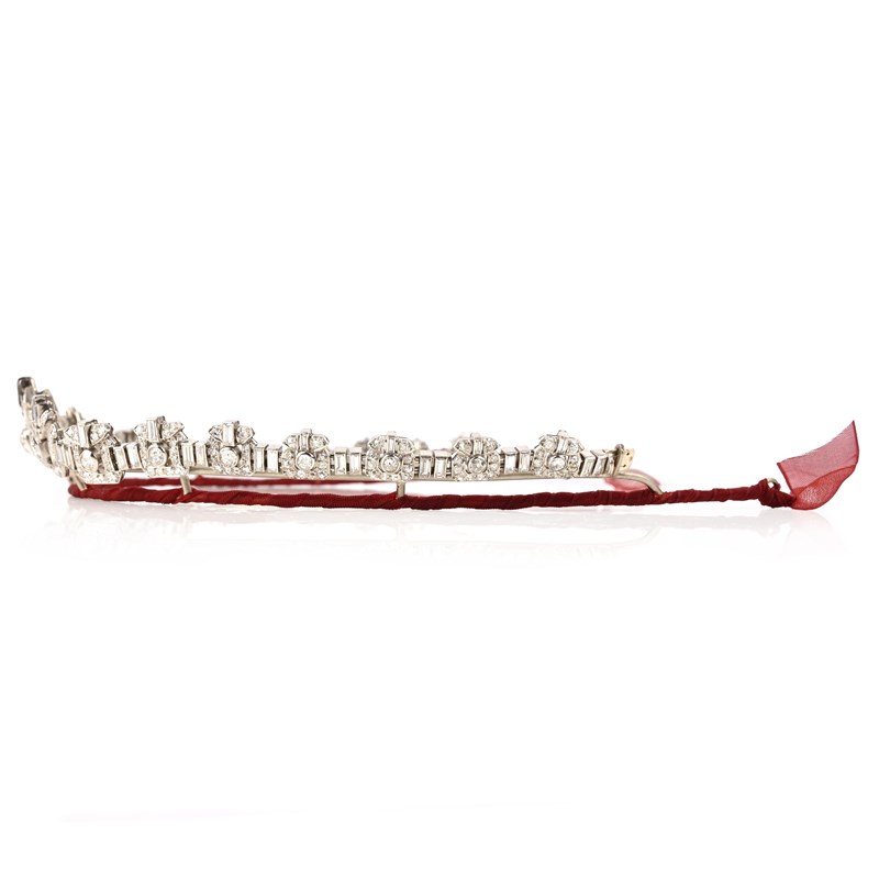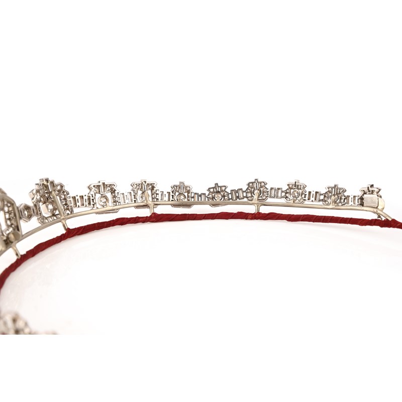 Another favourite feature of Mauboussin at this time, as with other French design houses, was the challenge to design transformable jewellery. Stimulated in part by the constrictions of the Great Depression, it became particularly popular from the mid-1930s, exhibited to great acclaim at the Paris Exposition Universelle of 1937 and later the New York World's Show of 1939, which closed this decade of jewellery design on the eve of the Second World War. The tiara / necklace conversion is a particularly happy combination and one that was well-known before the emergence of the transformable jewellery of the 1930s.