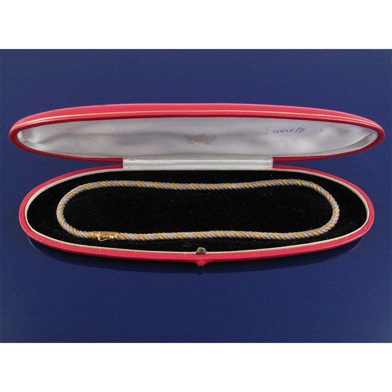 A two colour gold twisted rope link necklace. 37g. 43cm. In a Cartier box.