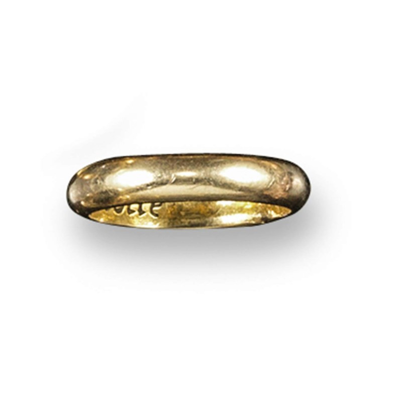 A gold posy ring, probably 18th century. Engraved to the interior Not the value but my love. Size H.