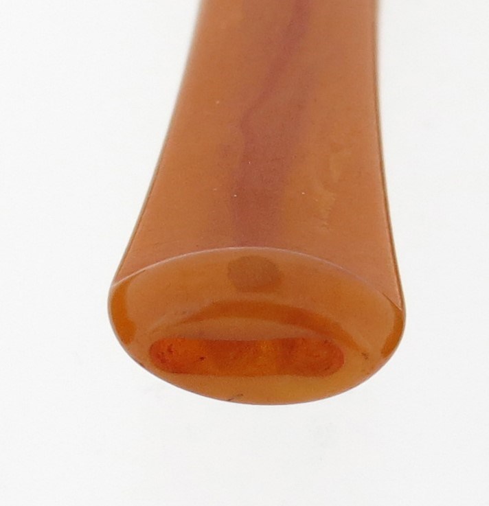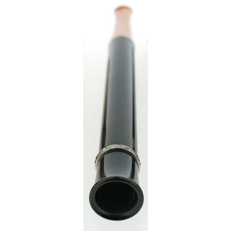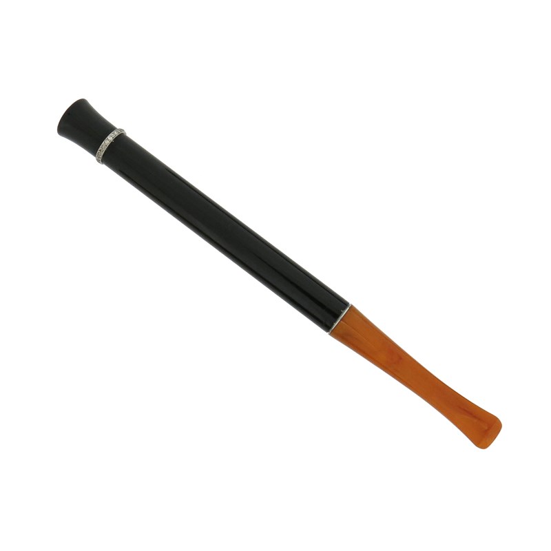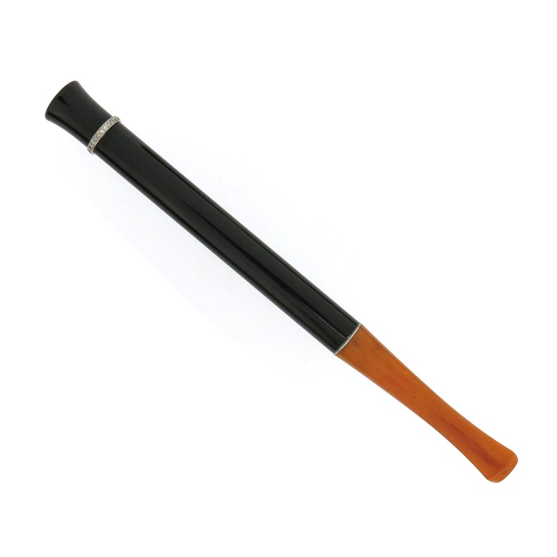 A simulated amber and black onyx cigarette holder, with platinum circle of small circular-cut diamonds, 14.5cm