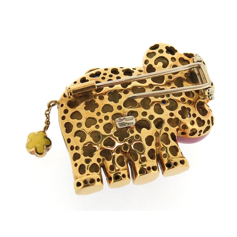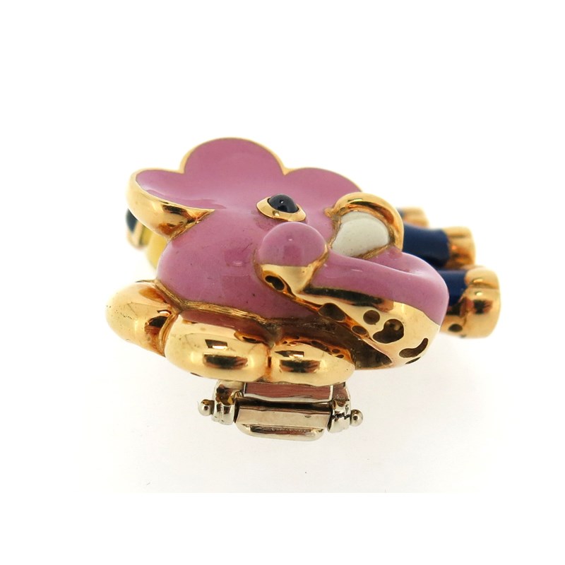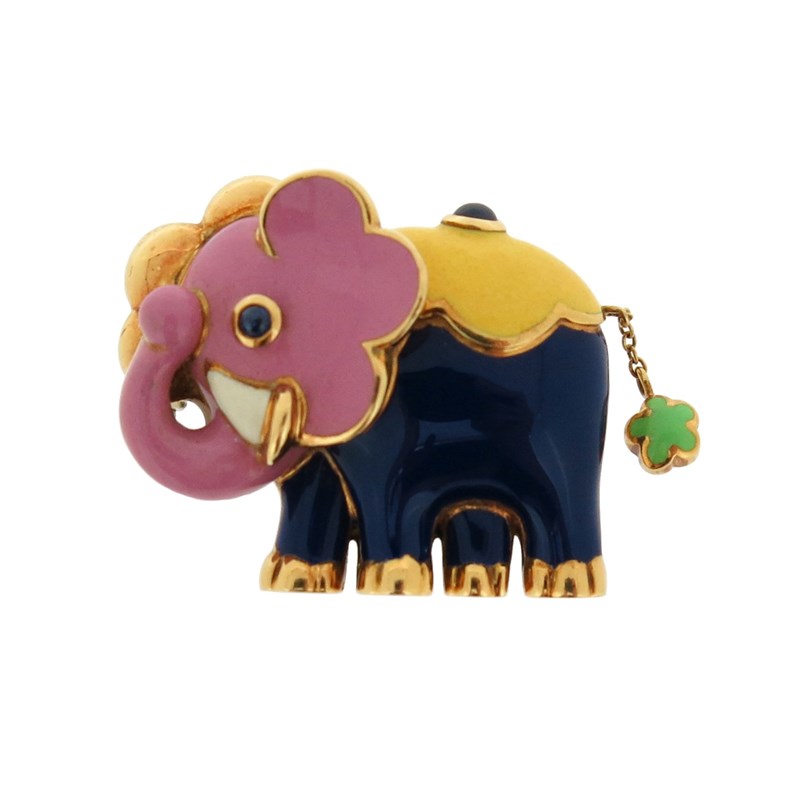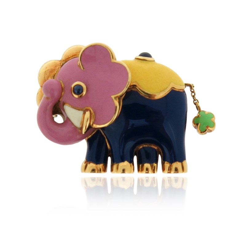 A gold and enamel elephant brooch