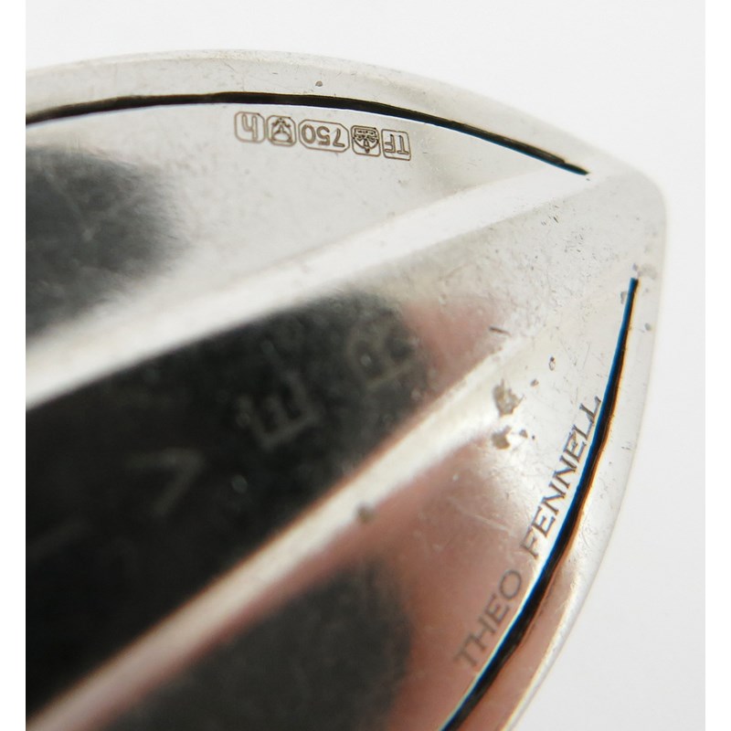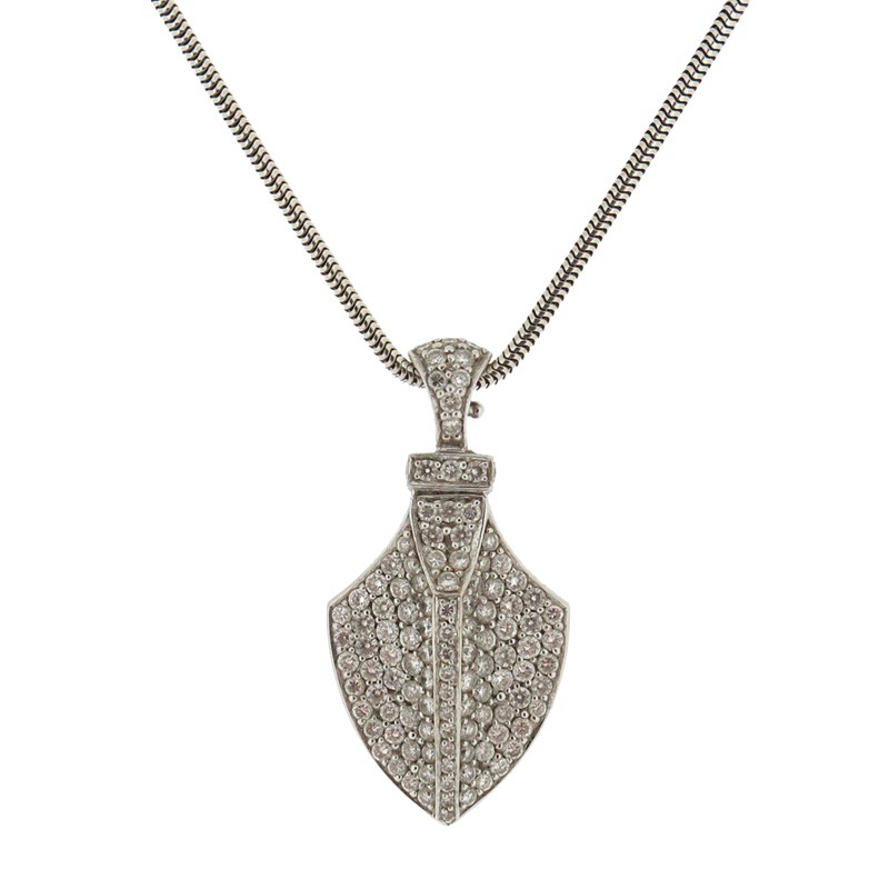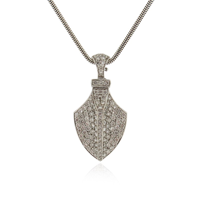 A diamond-set quiver pendant by Theo Fennell, in white gold, maker's mark and London hallmarks for 2007, on snake-link silver neck chain, pendant 3.8cm high, chain 44cm long