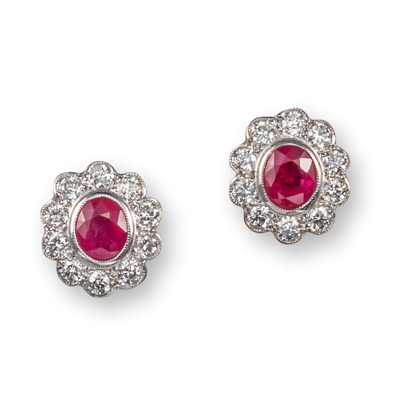 A pair of ruby and diamond cluster earrings