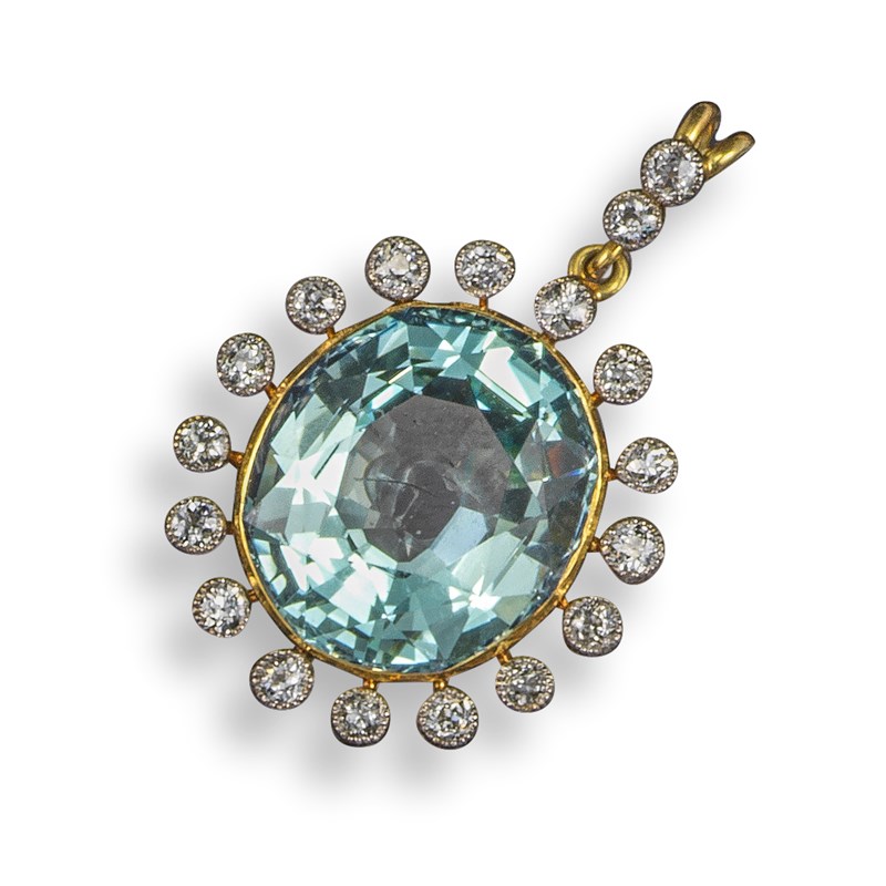 An Edwardian aquamarine and diamond pendant
