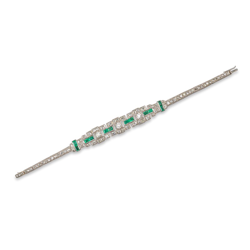 An Art Deco emerald and diamond bracelet