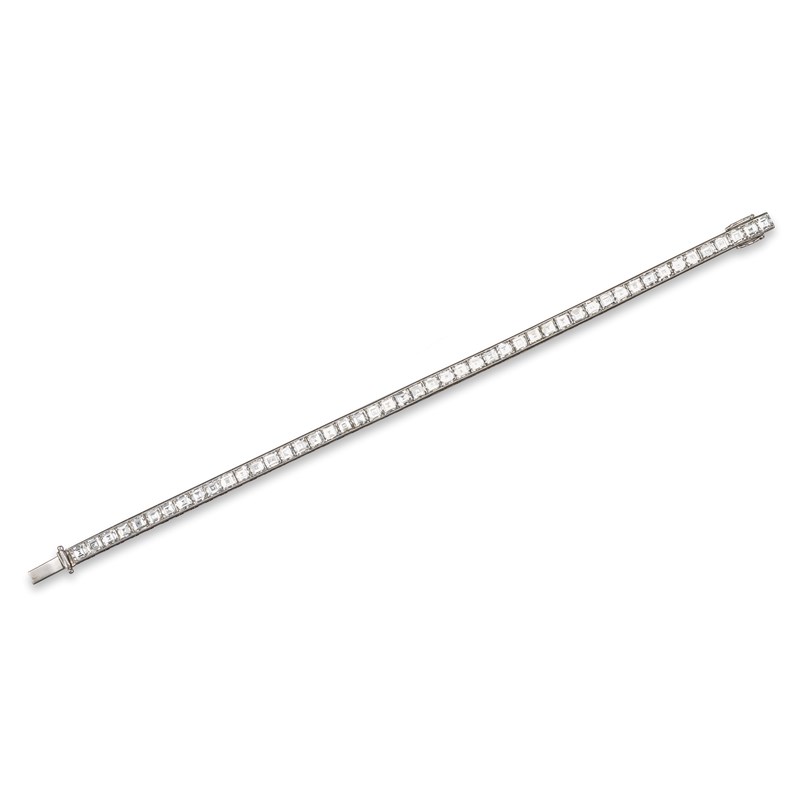 A diamond line bracelet, the square-shaped diamonds weigh approximately 11.00cts total and are channel-set in white gold, 17cm long