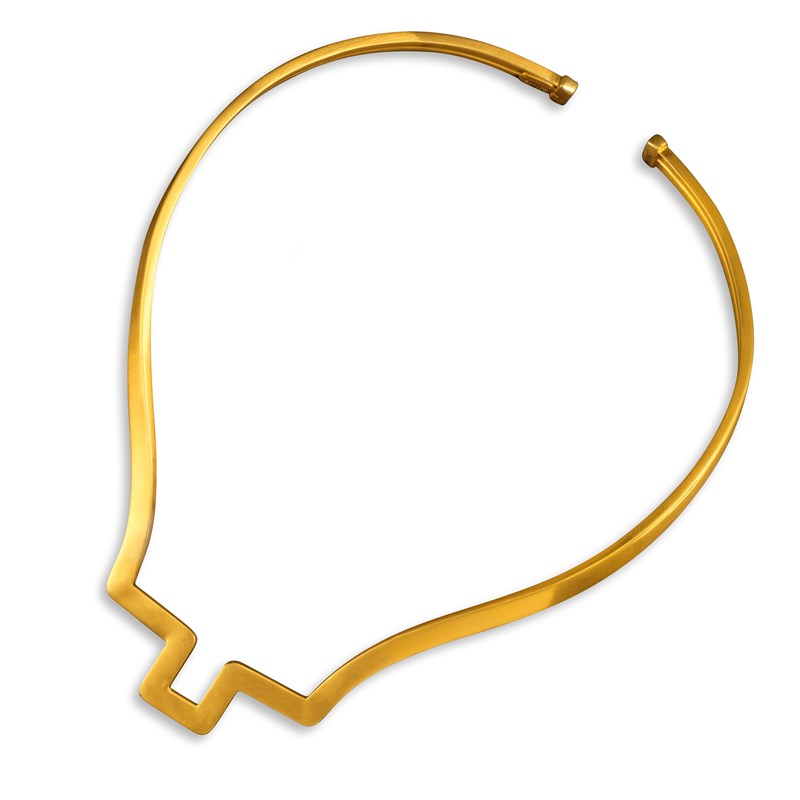 A gold collar necklace by Lalaounis, of architectural form and set in yellow gold, signed, 11.5cm diameter