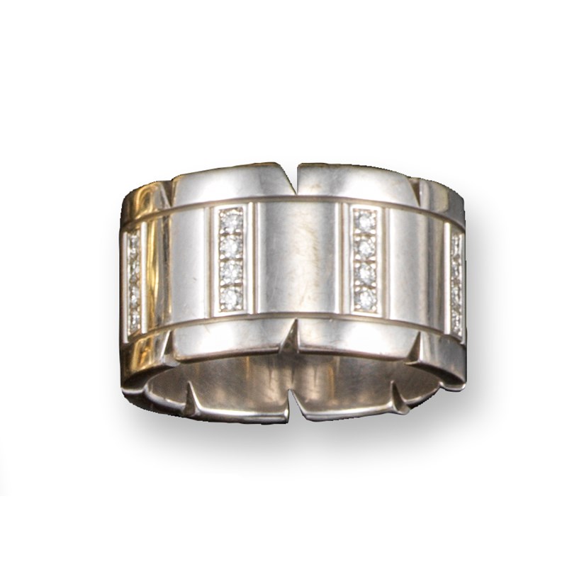 A white gold and diamond tank track ring by Cartier, set with lines of four round brilliant-cut diamonds in white gold, signed and numbered NG3966, size L 1/2