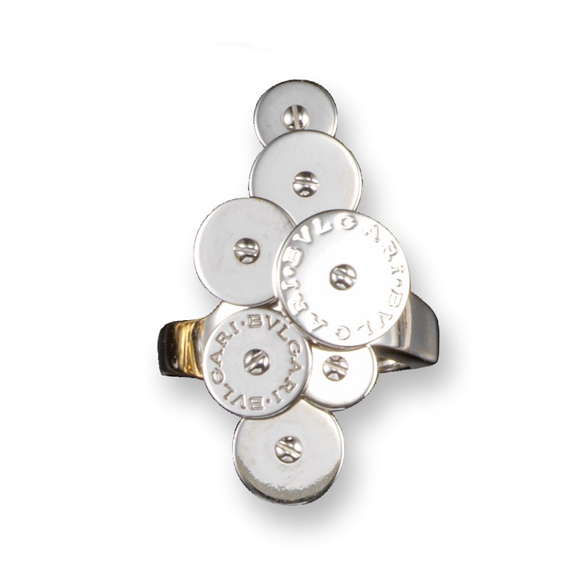 A Bulgari 'Cicladi' white gold ring, set with seven graduated spinning white gold disc, size J