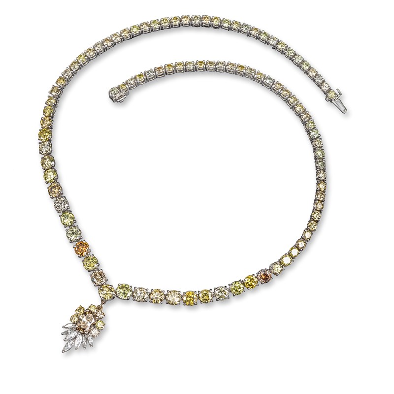 A fancy coloured diamond necklace