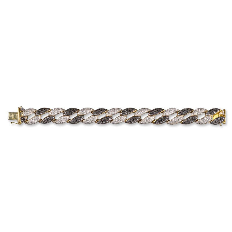 A diamond-set curb-link bracelet, alternately pave-set with black and white diamonds in yellow gold, 18cm long