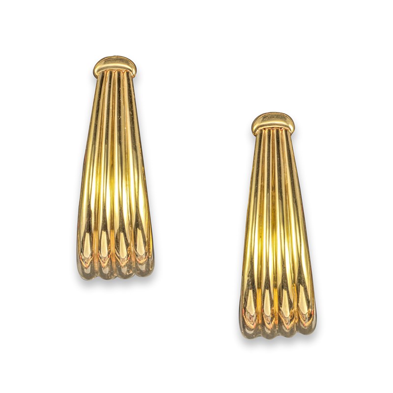 A pair of gold hoop earrings by Boucheron, of fluted design, signed Boucheron and numbered D083, 5cm high