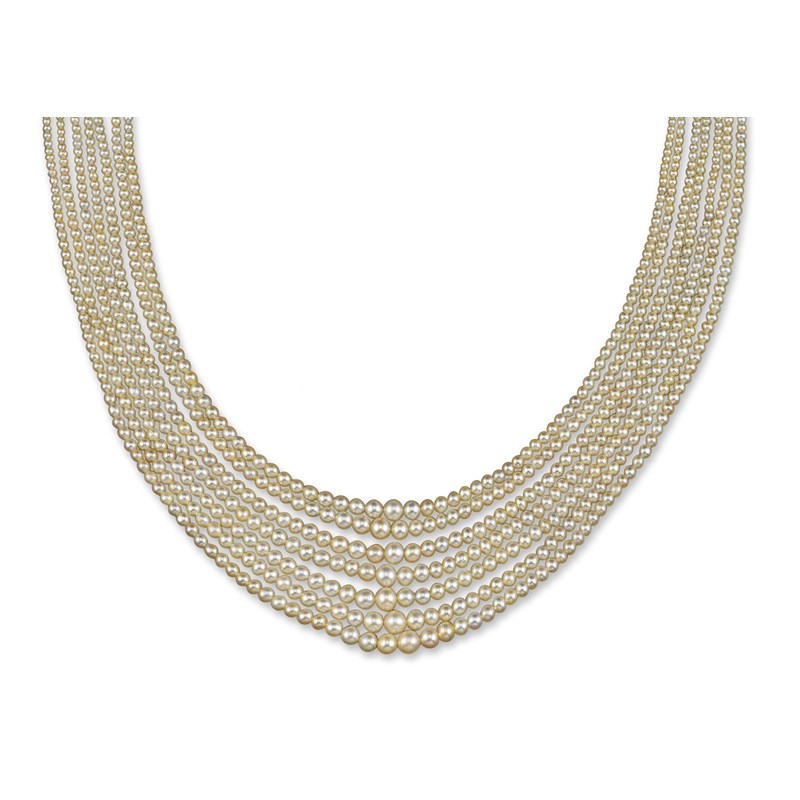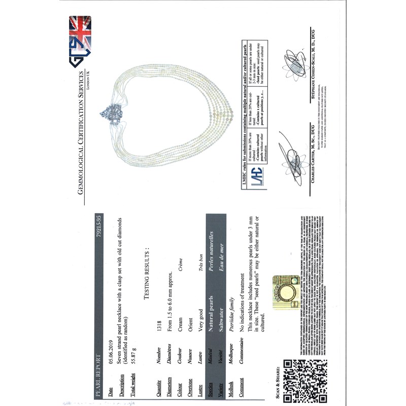 Accompanied by report number 79215-95 dated 5 June 2019 from GCS, London stating that the cream pearls measure 1.5 - 6.0mm approximately and are natural saltwater with no indications of treatment. Comment: The necklace includes pearls under 3mm in size. These 'seed pearls' may be wither natural or cultured.