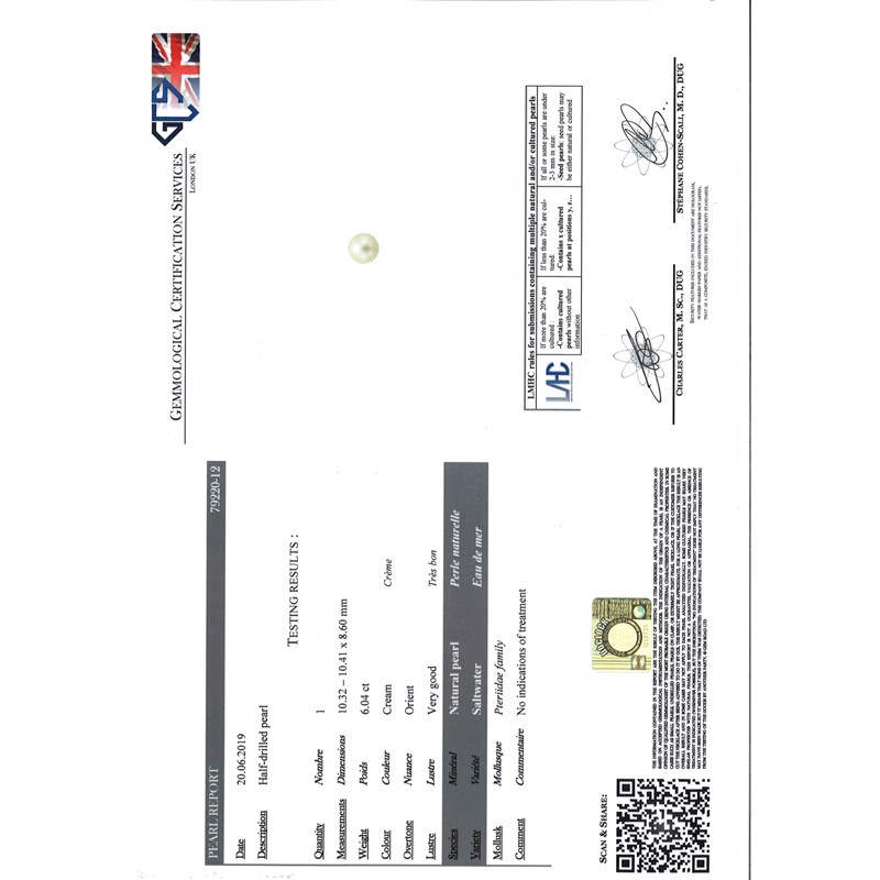 Accompanied by report number 79220-12 dated 20 June 2019 from GCS, London stating that the cream pearl weighs 6.04cts and is natural saltwater with no indications of heat treatment.
