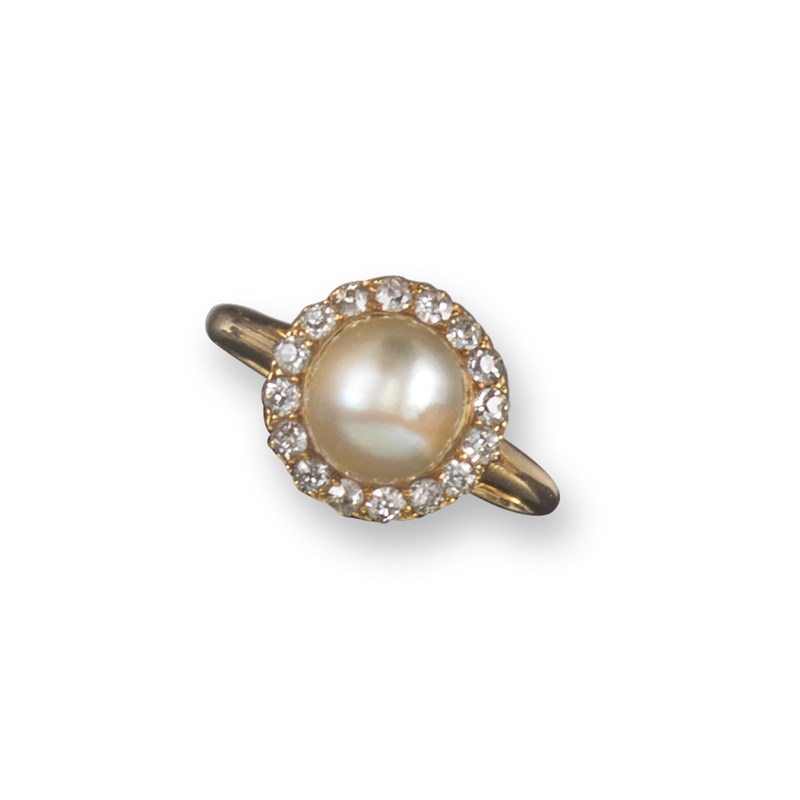 An early 20th century natural pearl and diamond cluster ring