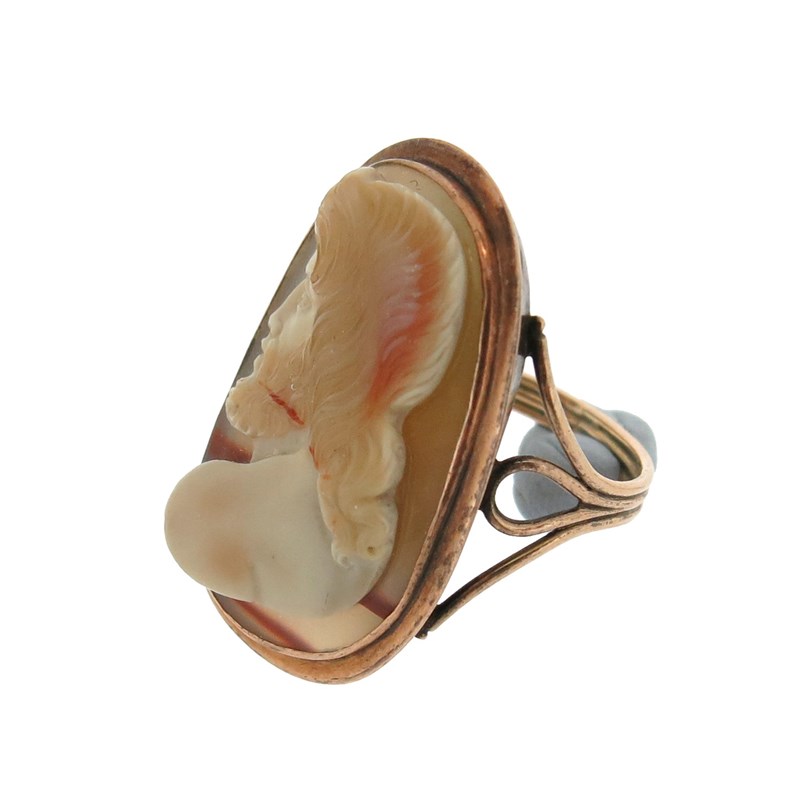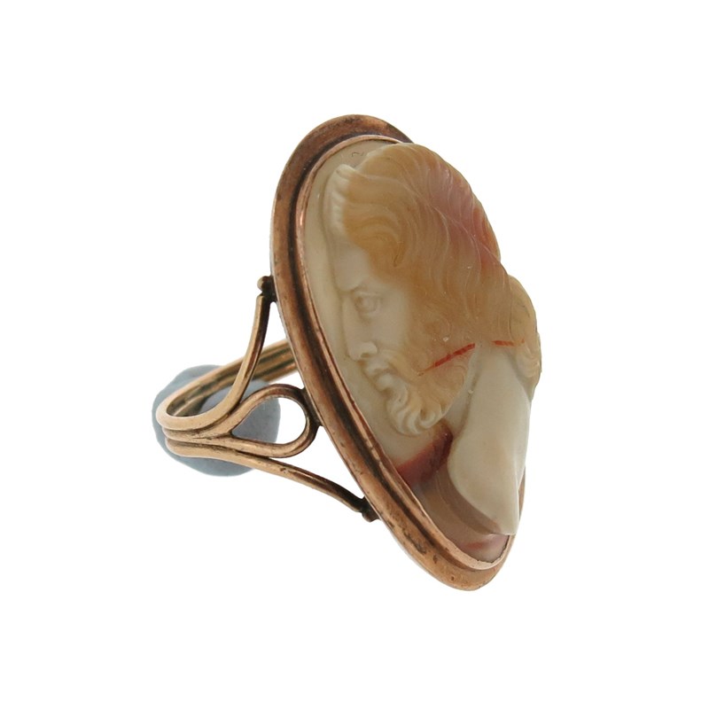 A late 18th century agate cameo depicting Jupiter, in gold ring mount, cameo 2.6cm high, approximately ring size O