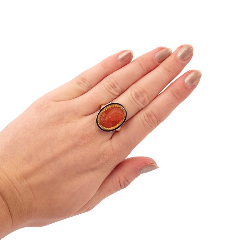 A carnelian and enamel ring, late 18th/early 19th century and later, set with a carnelian cameo
