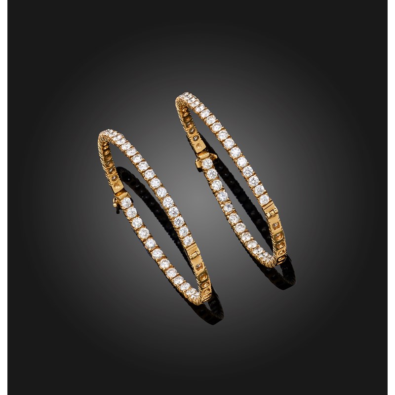 A pair of diamond earrings, each designed as a hinged hoop, set with brilliant-cut diamonds, mounted in gold, length 5.6cm each, post fittings