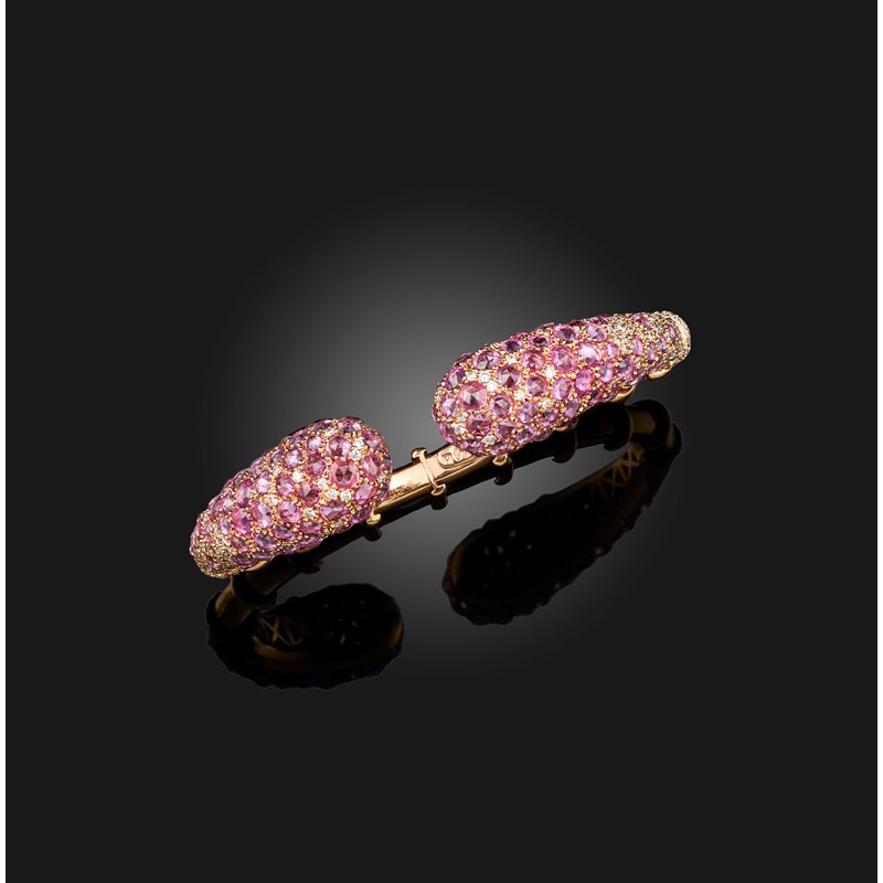 Verdi for Cellini NYC, a pink sapphire and diamond bangle, the open bangle of flexible construction,
