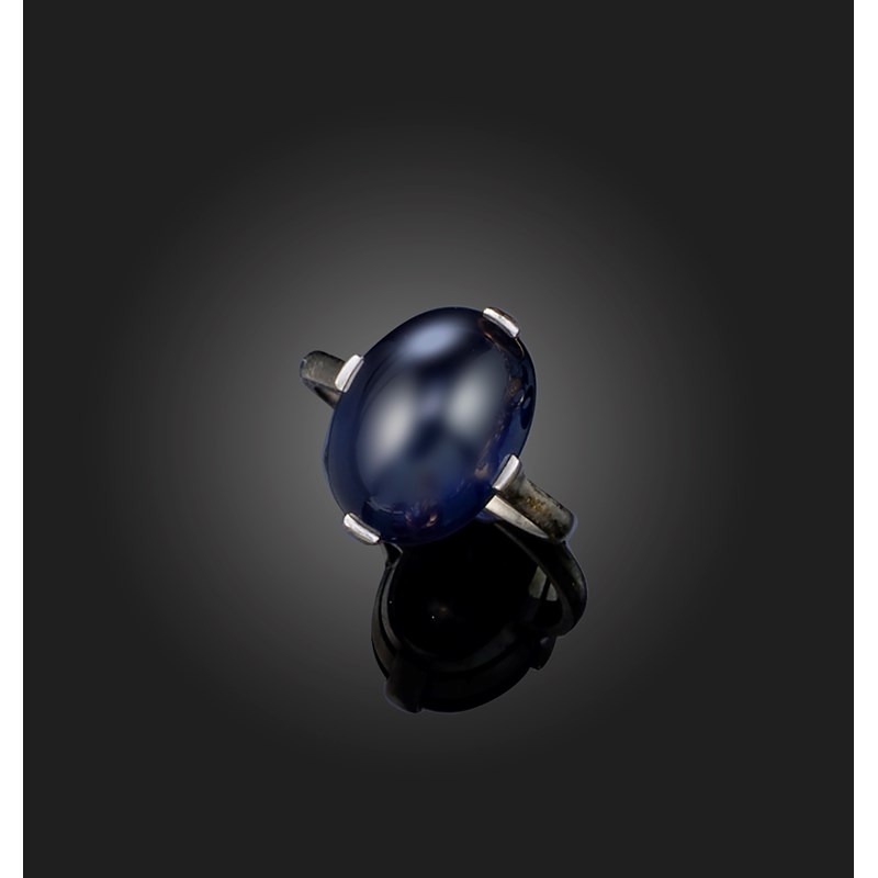 A sapphire solitaire ring, the cabochon sapphire weighing 18.80cts, claw-set in platinum, size P
