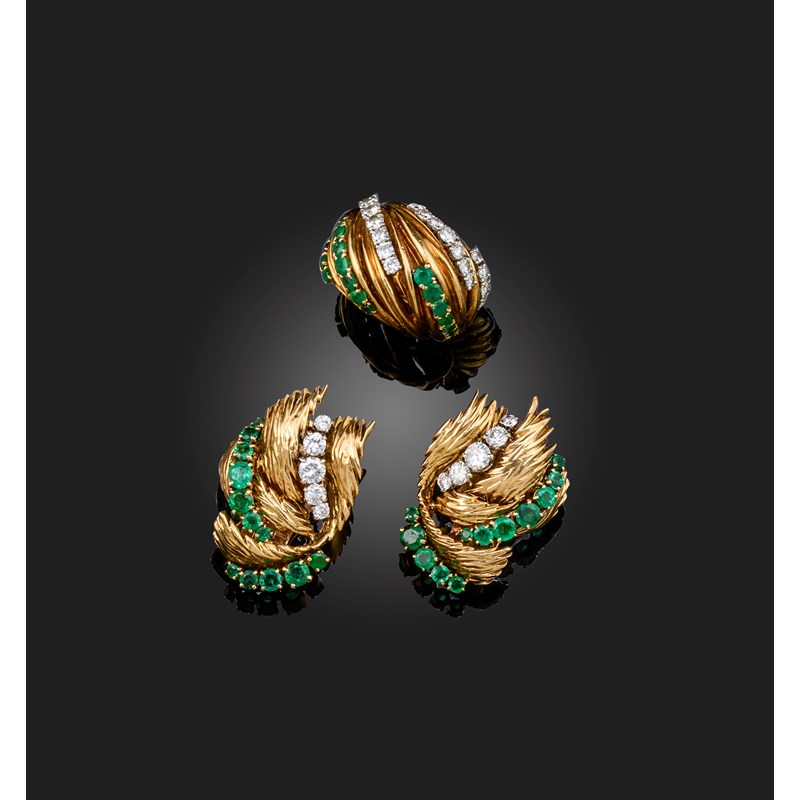 Van Cleef and Arpels, an emerald and diamond demi-parure, comprising an abstract yellow ring set
