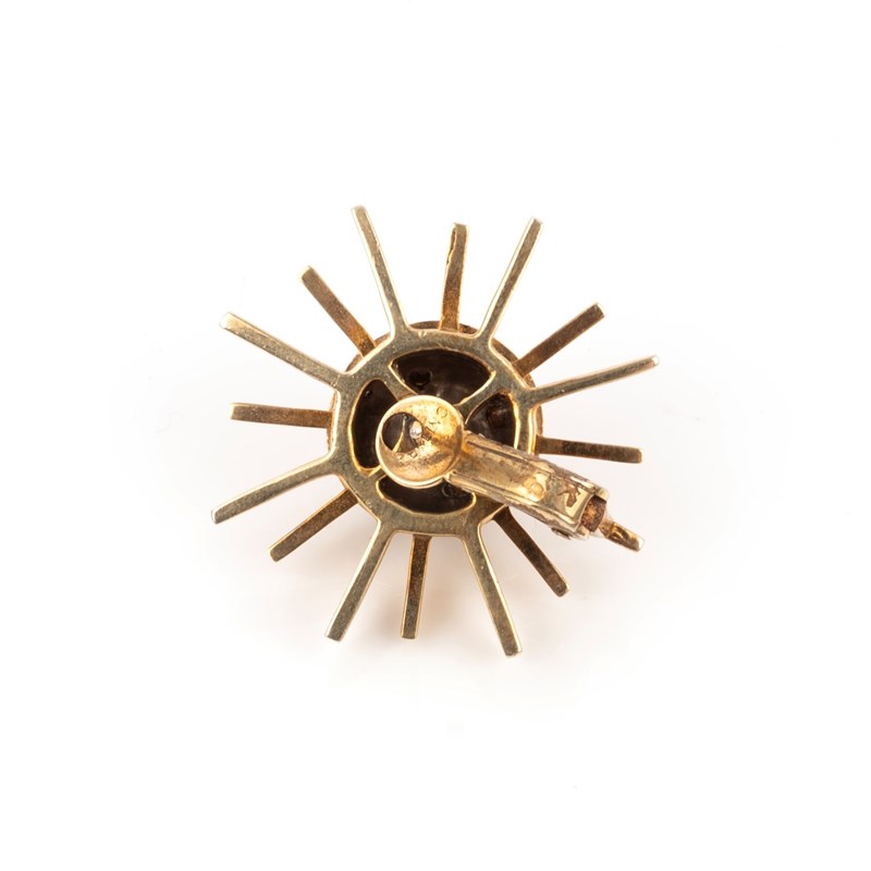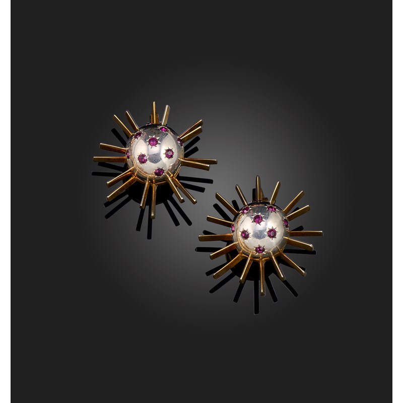 A pair of silver and gold 'Sputnik' earrings, set with circular-cut garnets in silver within gold