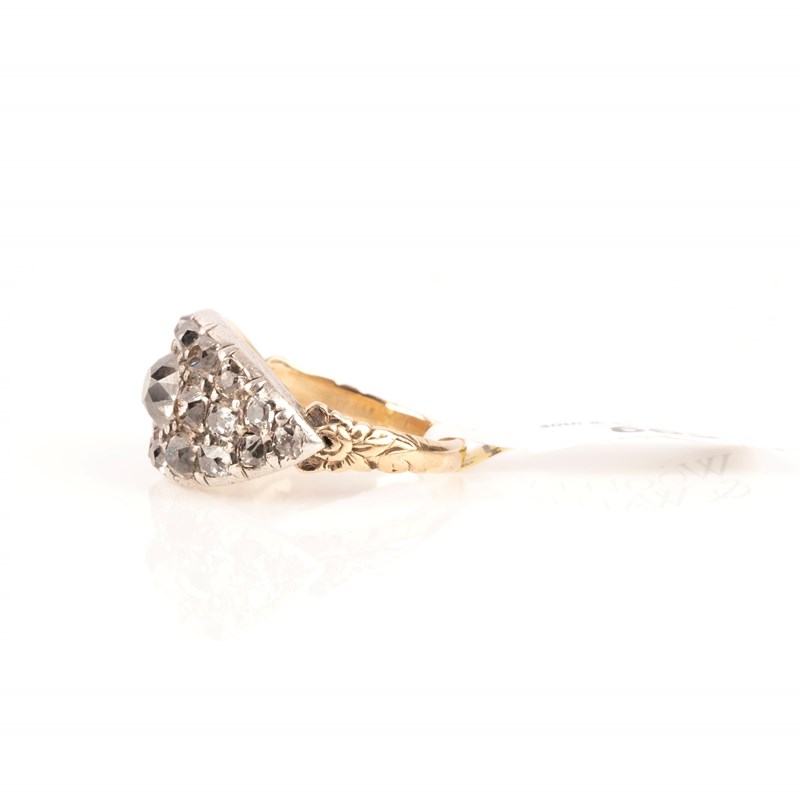 A George III diamond ring, late 18th/early 19th century, the front designed as a tapering panel pavé-set with cushion-shaped diamonds, to shoulders engraved with floral designs, mounted in silver and gold, size Q