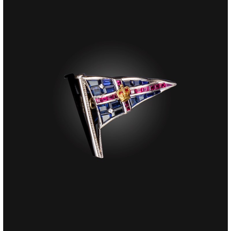 A sapphire, ruby and enamel brooch, designed as the burgee of the Royal Southern Yacht Club, set