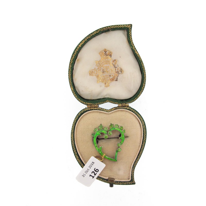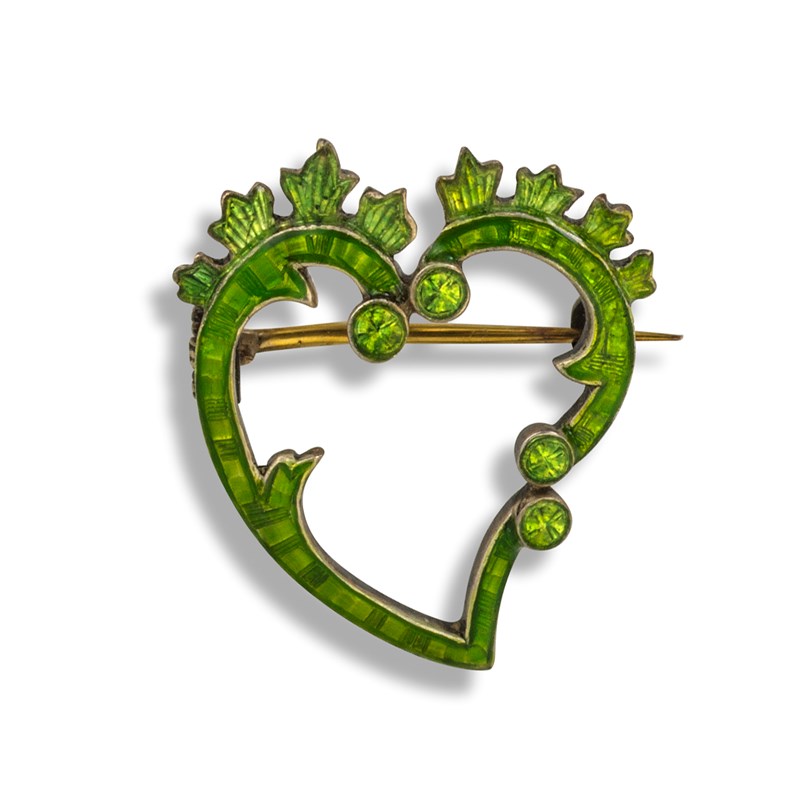 A green enamel heart-shaped brooch by Child & Child