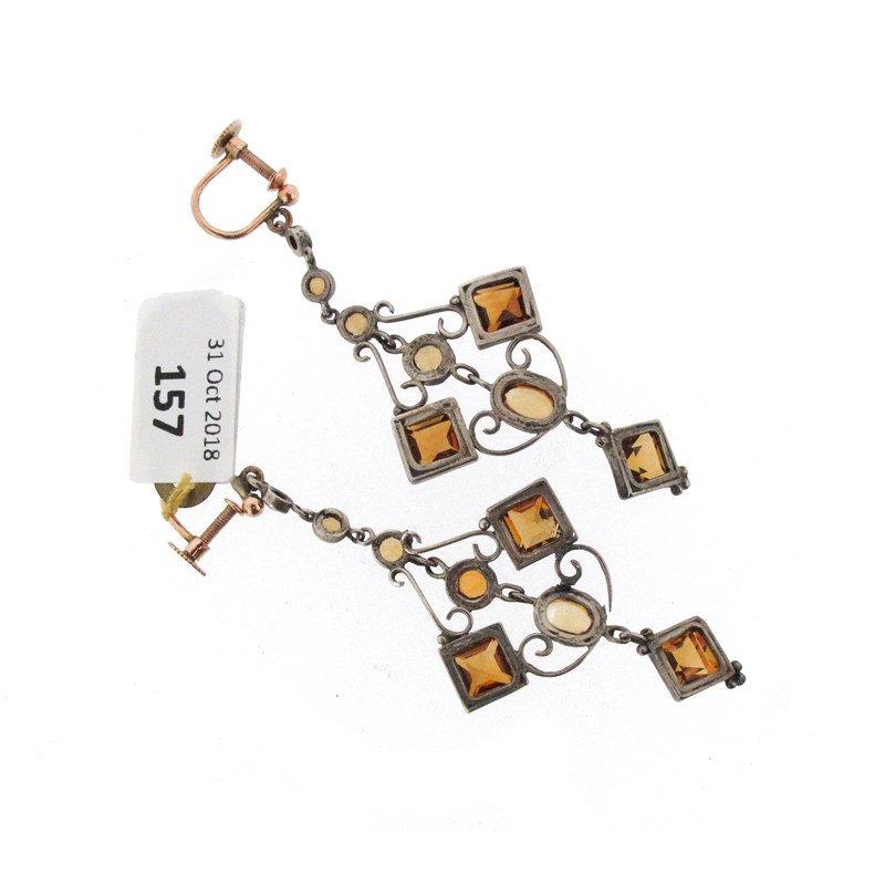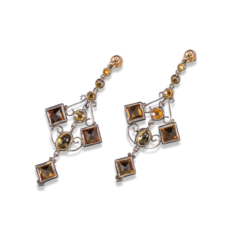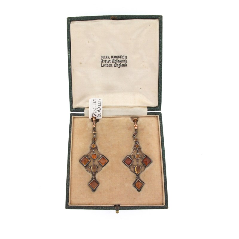 A pair of Arts & Crafts citrine earrings attributed to Omar Ramsden