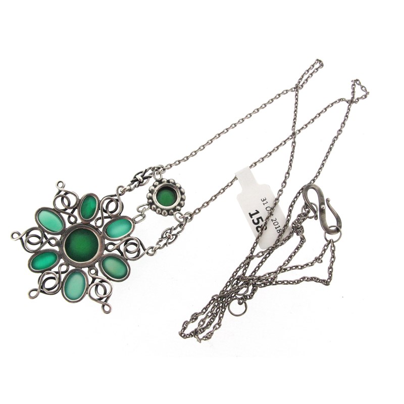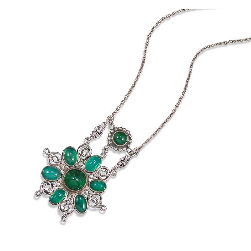 An Arts & Crafts chrysoprase pendant attributed to Omar Ramsden