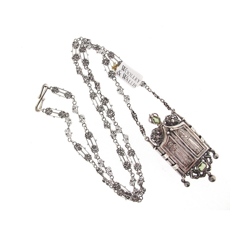 An Arts & Crafts silver tabernacle pendant by Ramsden & Carr