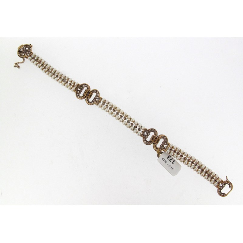 A diamond and cultured pearl set gold bracelet