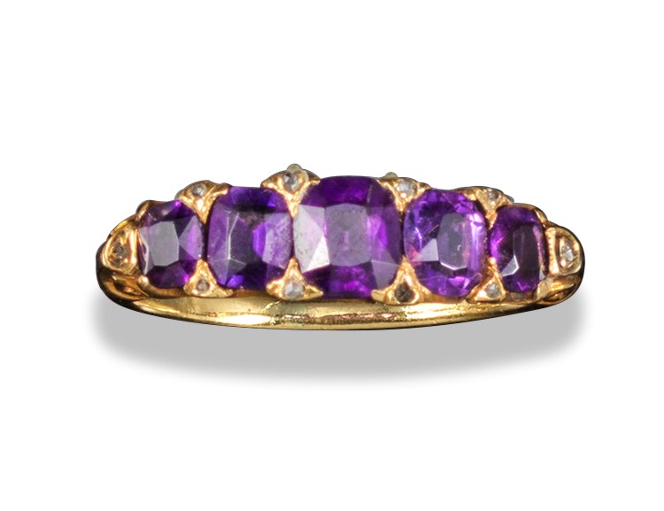 An amethyst five-stone half-hoop ring