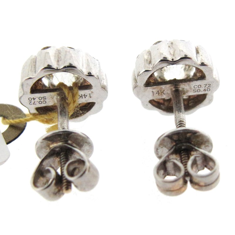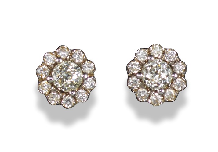 A pair of diamond cluster earstuds, each stud centred with a circular-cut diamond within the surround of ten smaller circular-cut diamonds in white gold