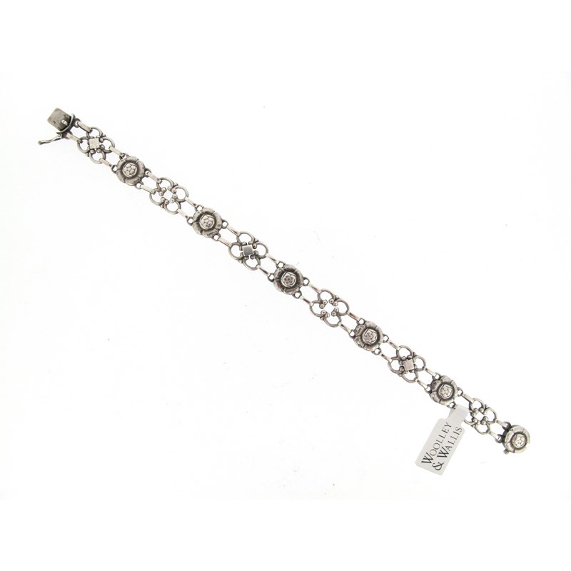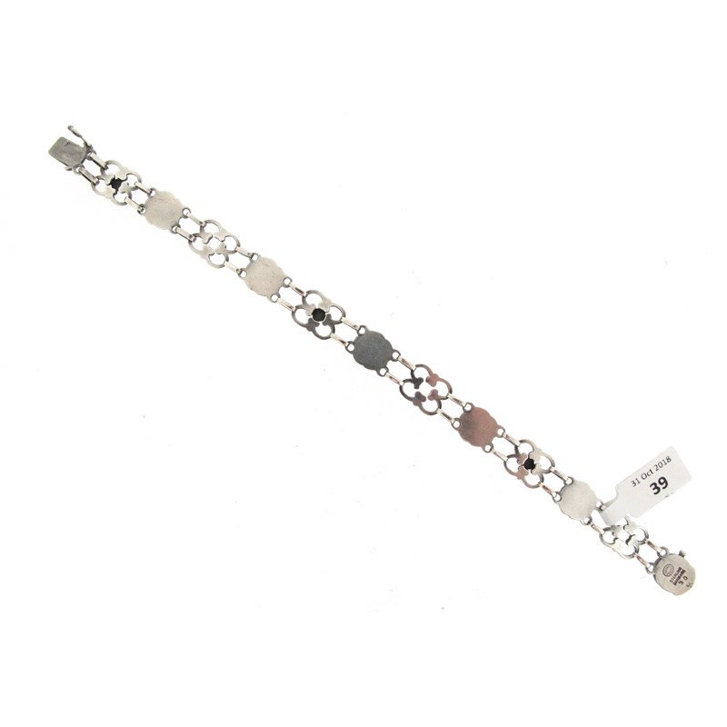 A silver foliate bracelet by Georg Jensen, design no. 50, post-1945, designed as alternating quatrefoil links between blossoming flower head links, box clasp with safety catch, stamped Sterling Denmark and with maker's mark, 20cm long