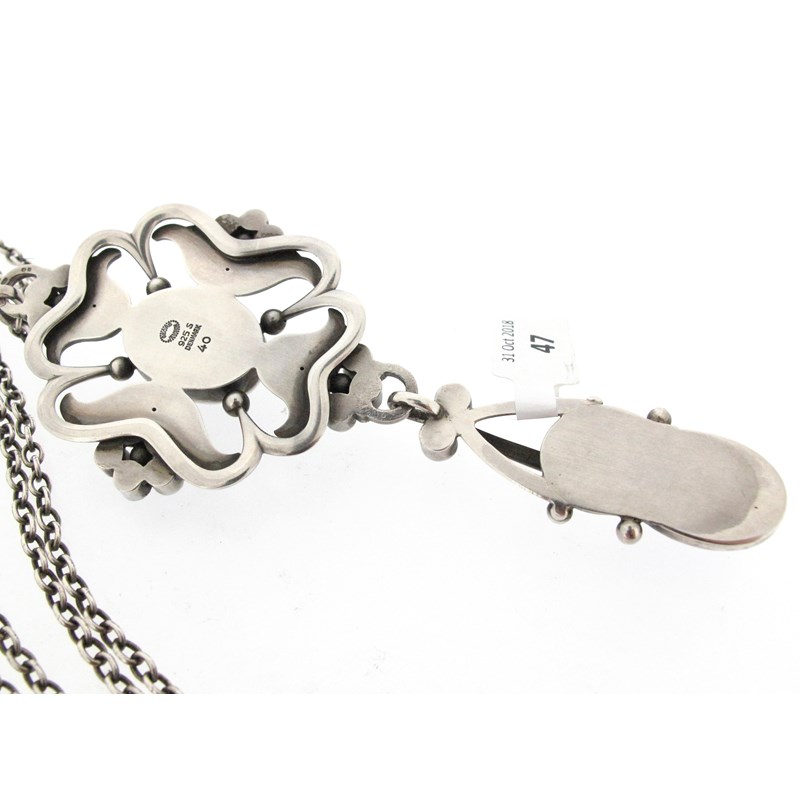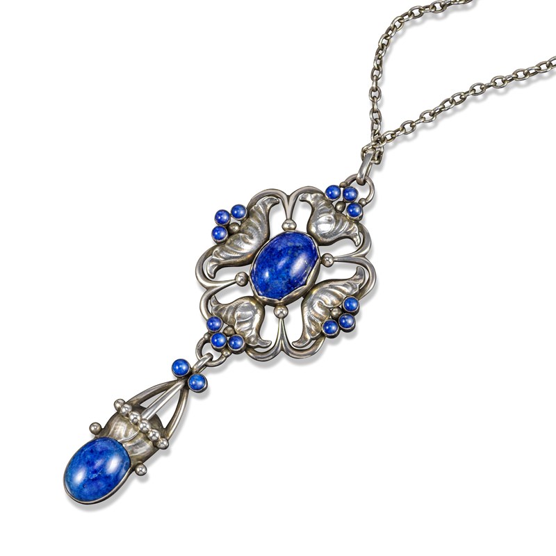 A silver and lapis lazuli foliate pendant by Georg Jensen