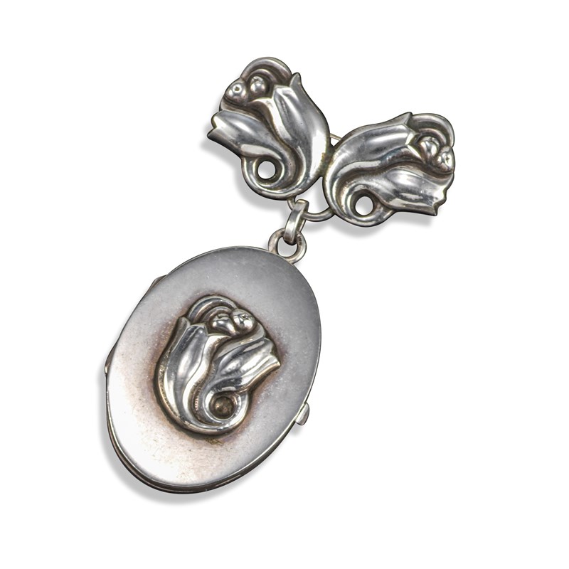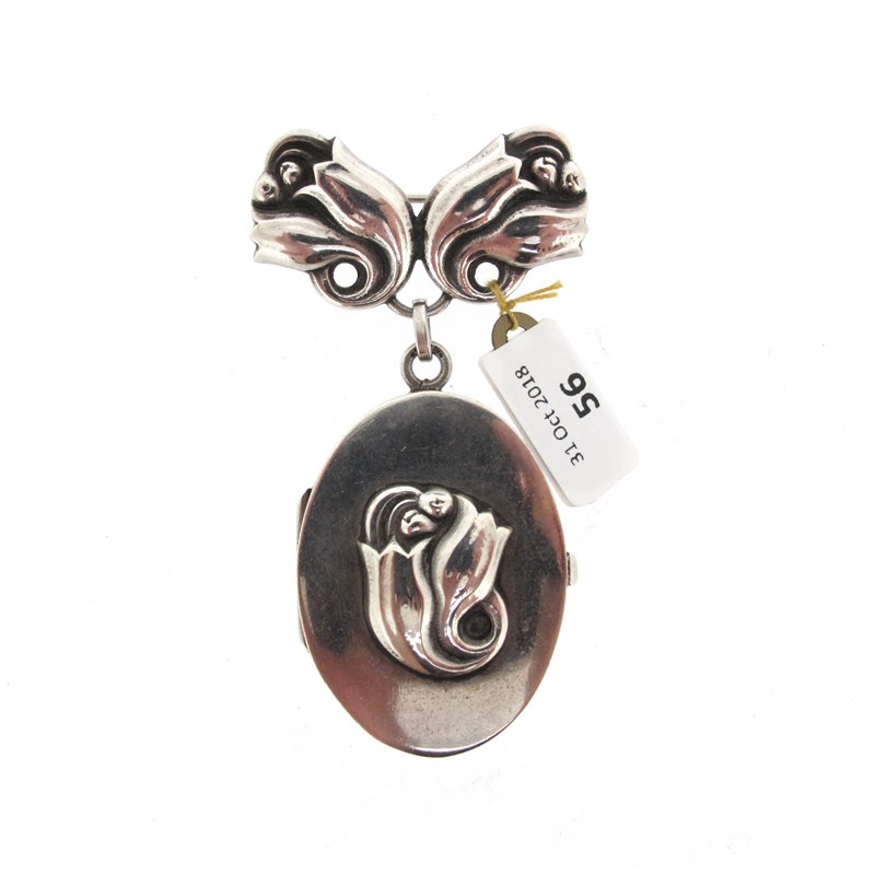 A silver locket brooch for Georg Jensen Inc U.S.A.
