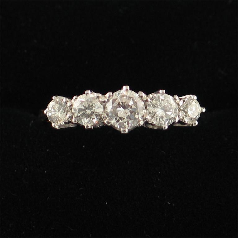 A diamond five stone ring, the graduated diamonds weigh approximately 1.25 carats and are set in gold.