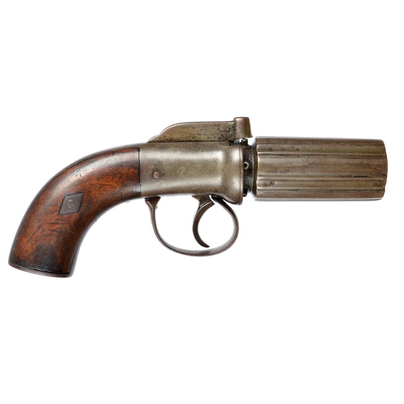 An English 120 bore six-shot 'pepperbox' percussion revolver