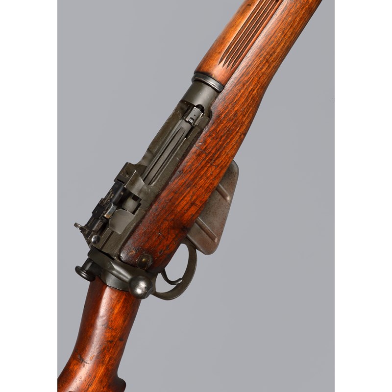 A .410 converted (magazine restricted) No4 bolt action shotgun, serial number 3L8089, full military configuration but smooth bored and converted to single loading (and marked accordingly), receiver dated 1942, early No4 round cocking piece, Section 2 - SGC or RFD required to purchase.