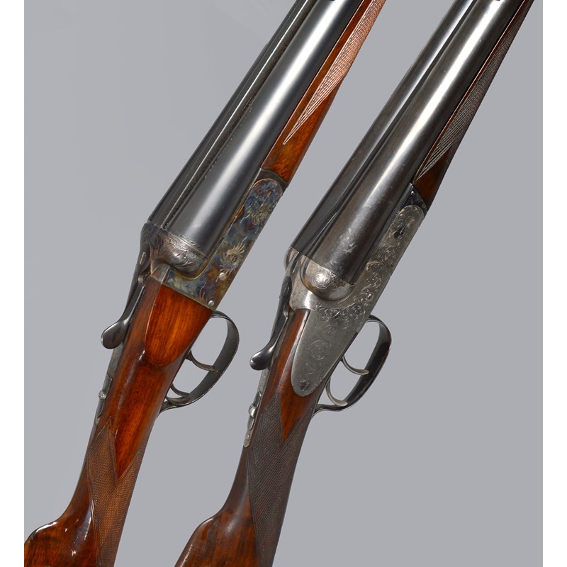 A 12 bore box lock non-ejector, serial number 77041, 27.5 in. barrels, 2 3/4 in. chambers, automatic safety, blued and engraved action, 14.25 in. chequered stock. [2]